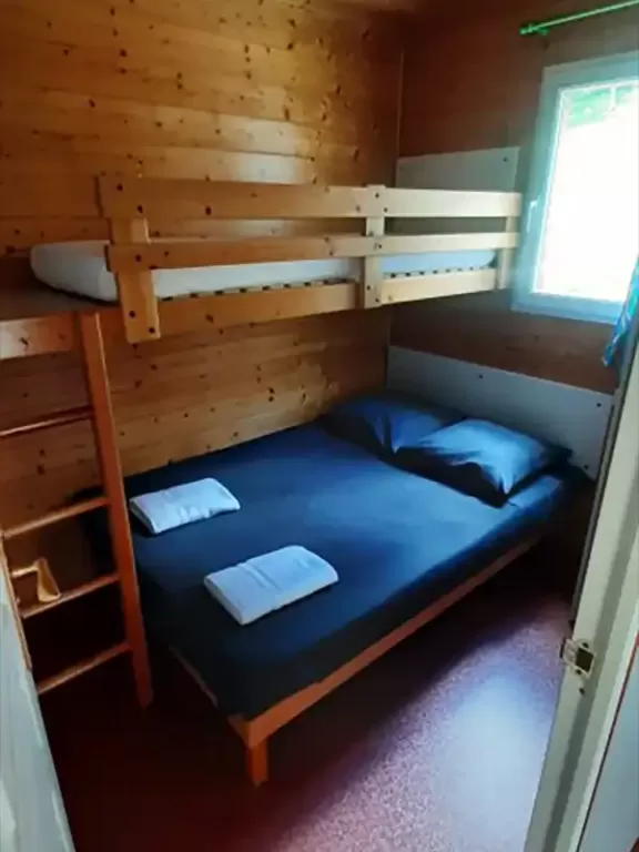 - 2 lits simples superposés 80 cm + un lit 2places 140 cm.